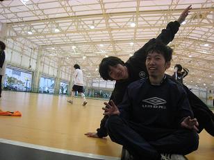 フットサル 謎のポーズをとる、稔&なりちゃん。